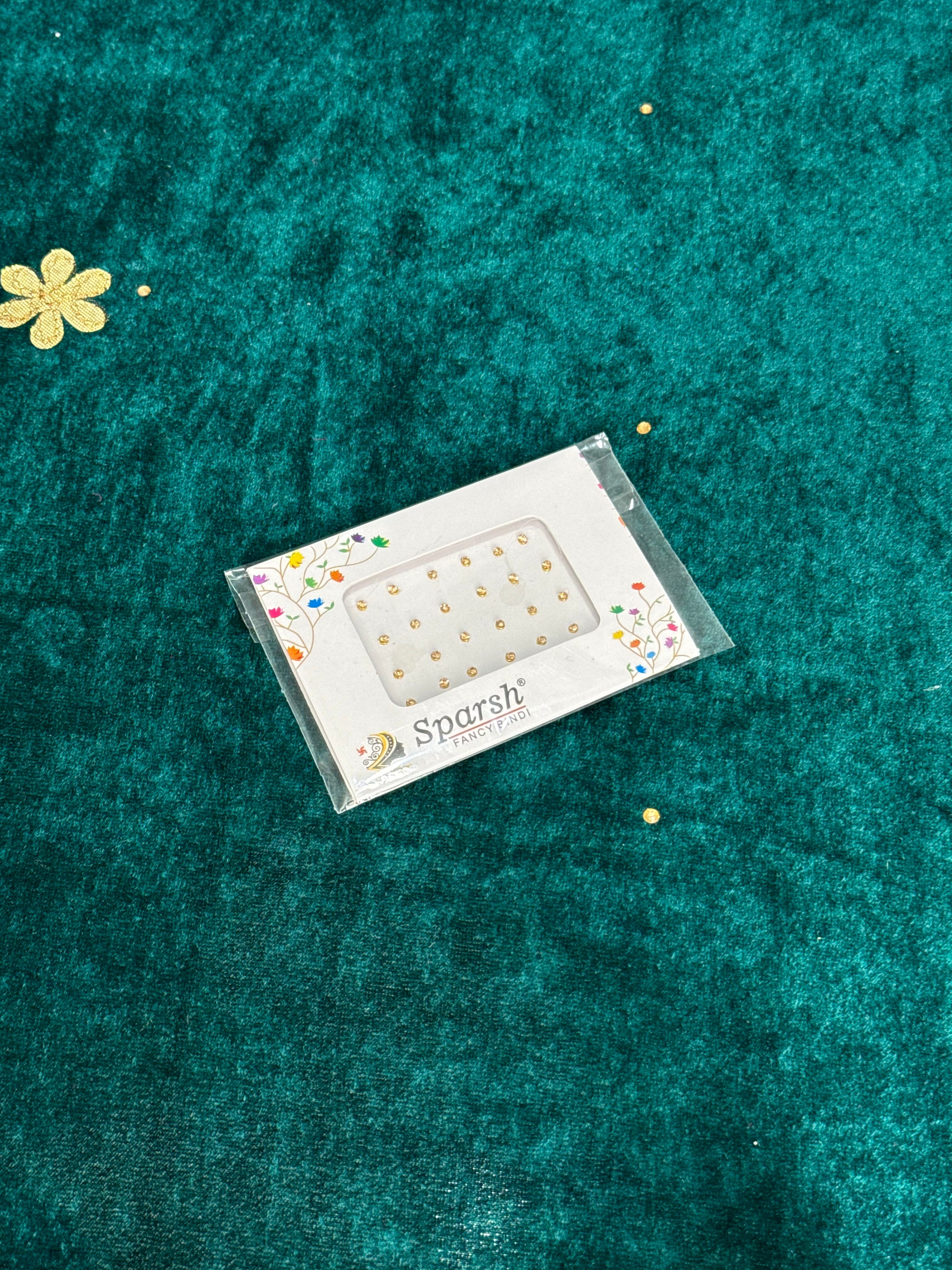 Add a touch of elegance and tradition to your look with our stunning collection of Bindis. From simple and classic designs to bold and intricate patterns, our bindis are perfect for weddings, festivals, or daily wear. Adorned with stones, glitter, and vibrant colors, each bindi is crafted to enhance your beauty and complement your style.