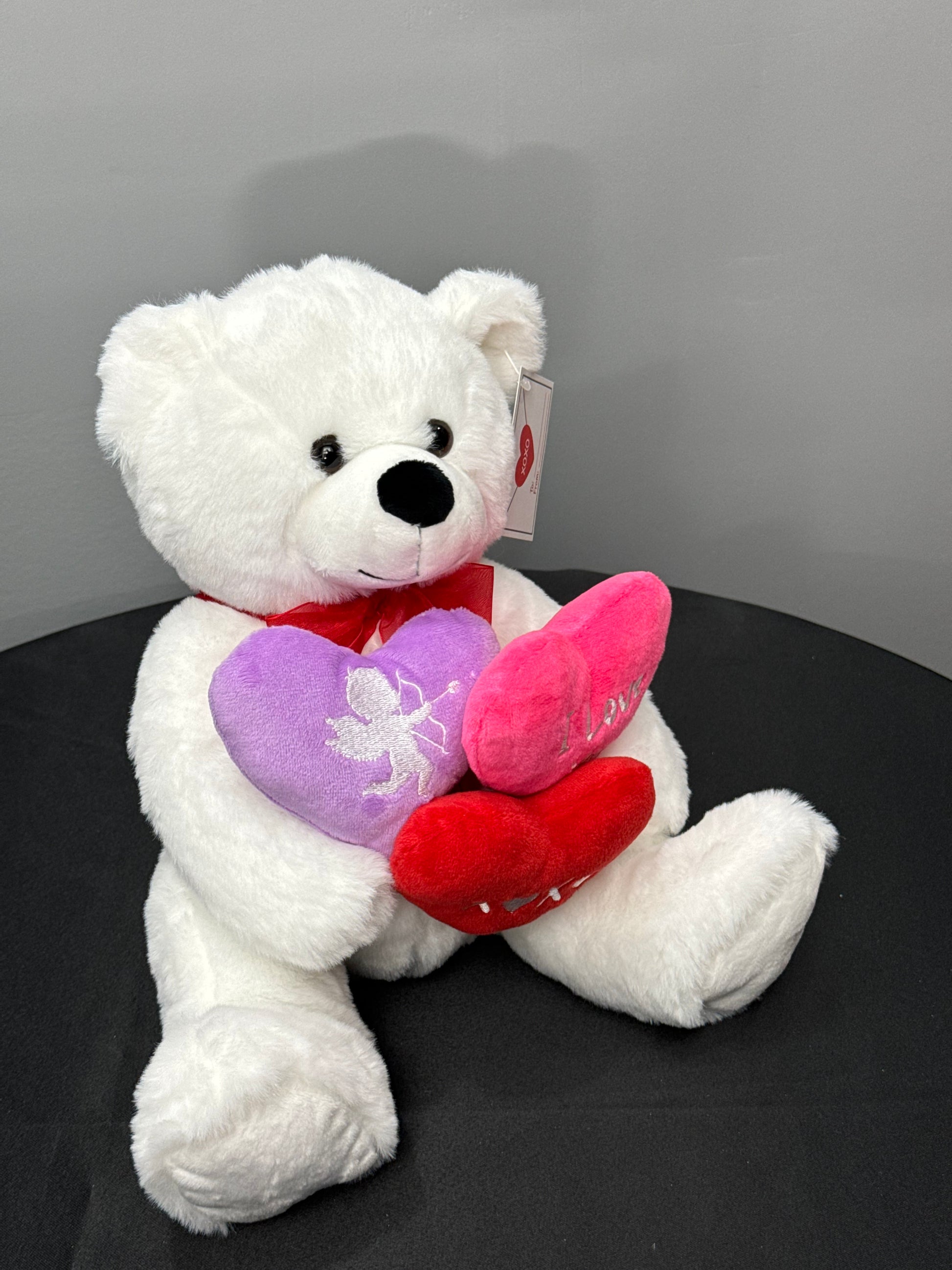 This adorable teddy bear has not one, not two, but three hearts, making it the perfect gift for someone special. Whether it's for Valentine's Day, an anniversary, or just to show someone you care, the Triple Heart Teddy is sure to bring joy and love to its recipient. Plus, it's soft and cuddly, making it perfect for snuggling with!