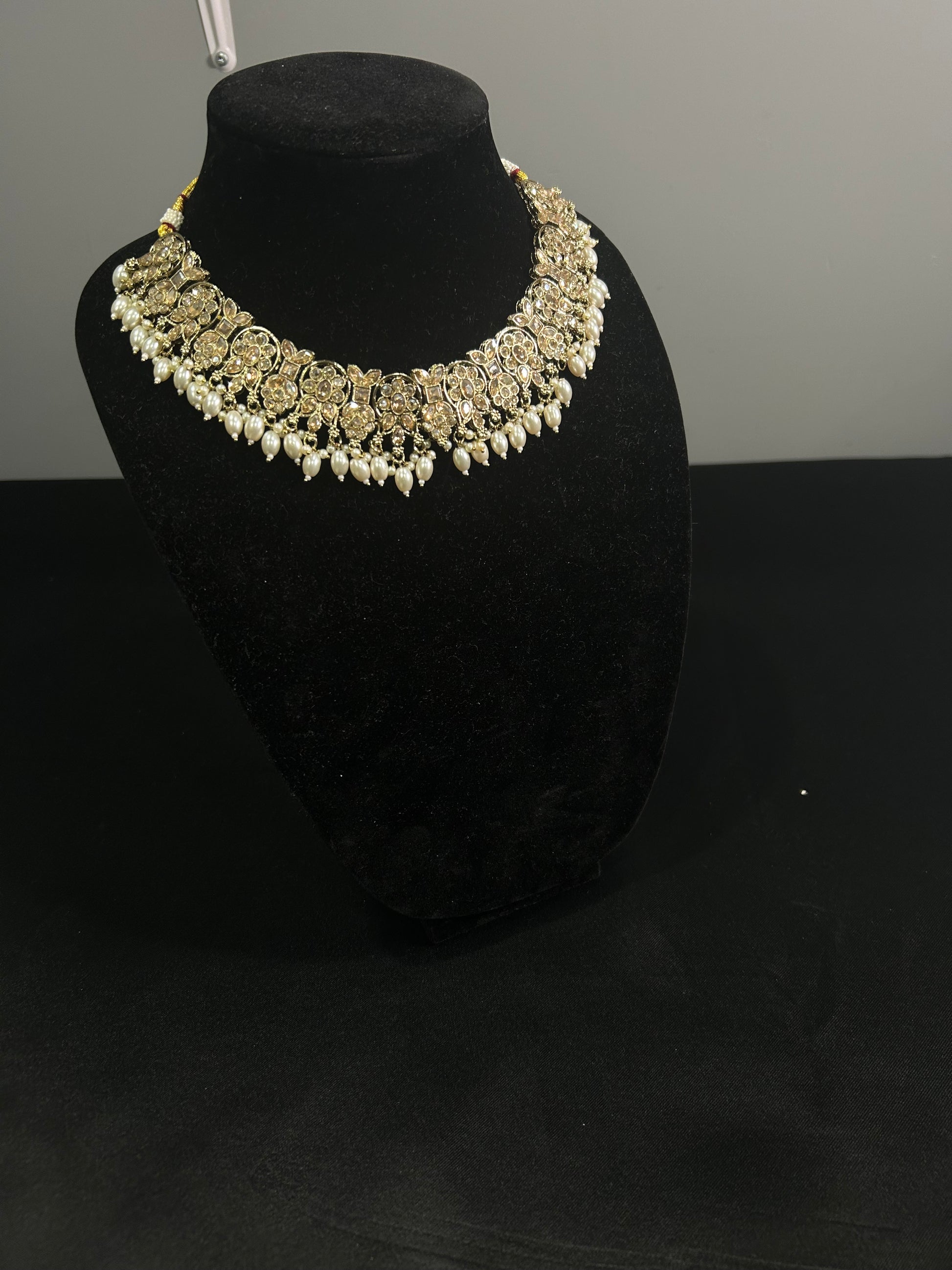 This elegant Necklace set will add a touch of glamour to any outfit. The intricate designs of the necklace and earrings, combined with the beautiful stones, will make you stand out in any crowd. Handcrafted with precision, this set is sure to impress.