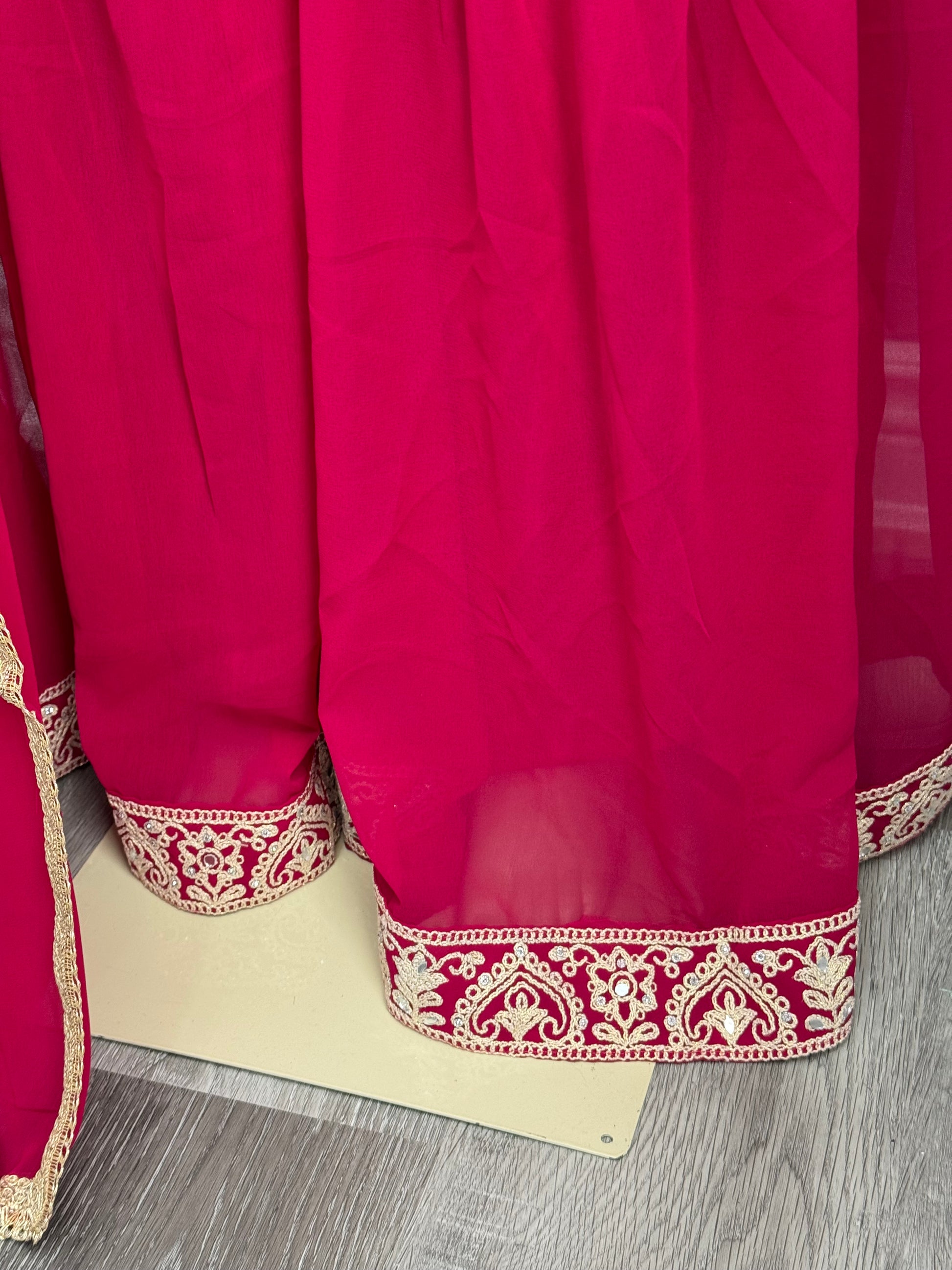 This Wavy Shaan Gharara Suit is expertly crafted with beautiful mirror and embroidery work, creating a truly beautiful and elegant garment. Made with the highest quality materials, it is both comfortable and stylish. Perfect for any occasion, this suit is sure to make you stand out in a crowd.
