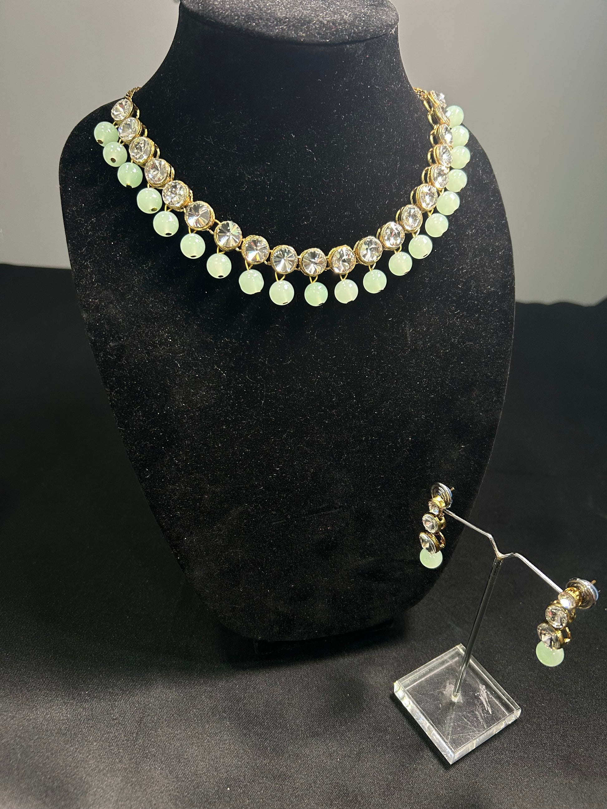 This beaded elegant Necklace set will add a touch of glamour to any outfit. The intricate designs of the necklace and earrings combined with the beautiful stones, will make you stand out in any crowd. Handcrafted with precision, this set is sure to impress.