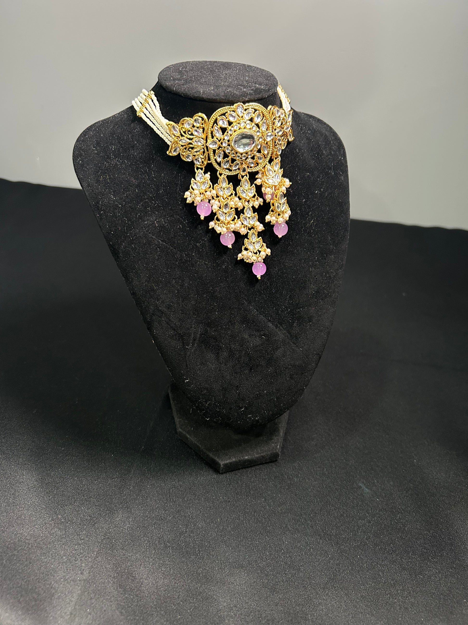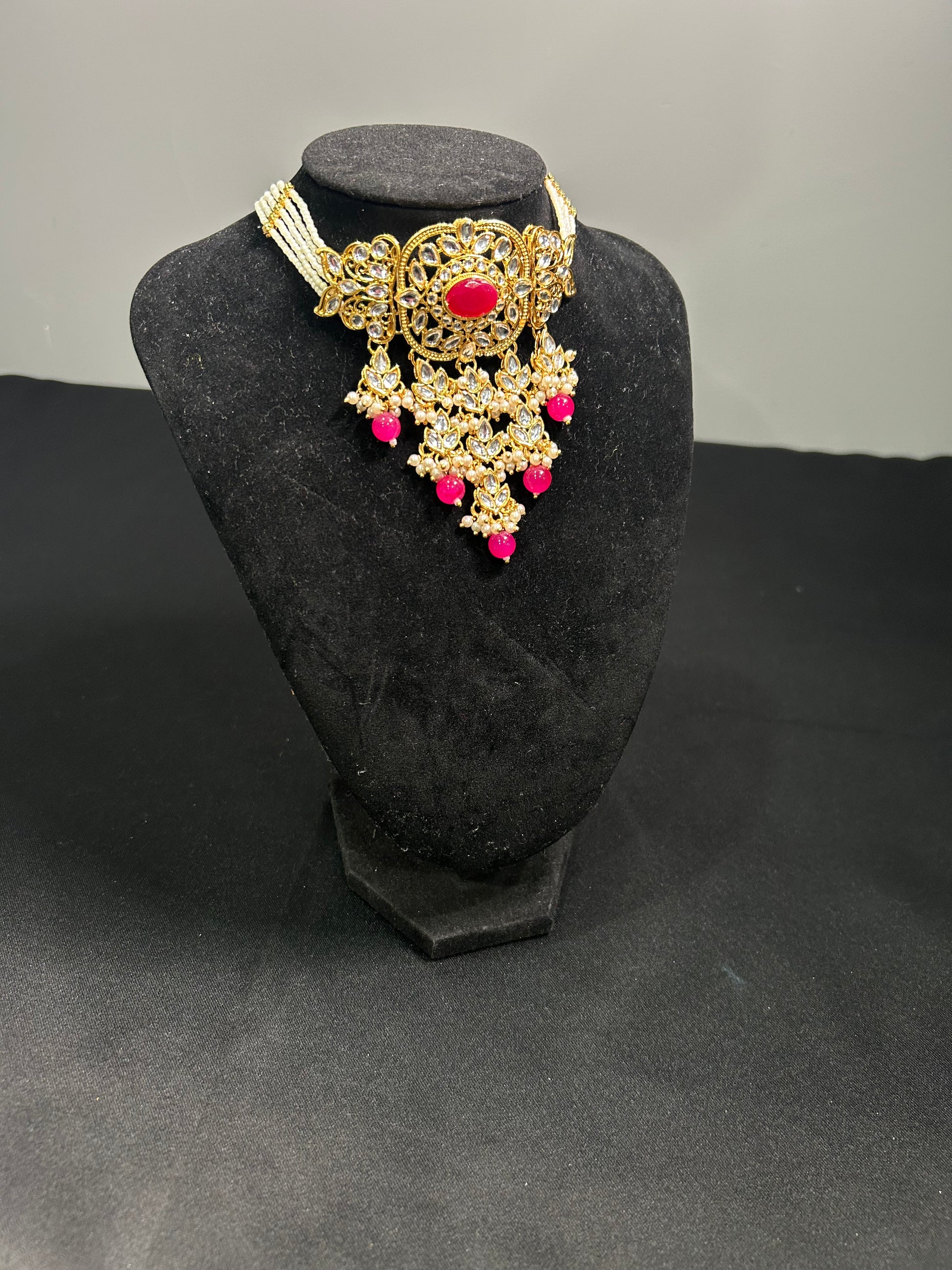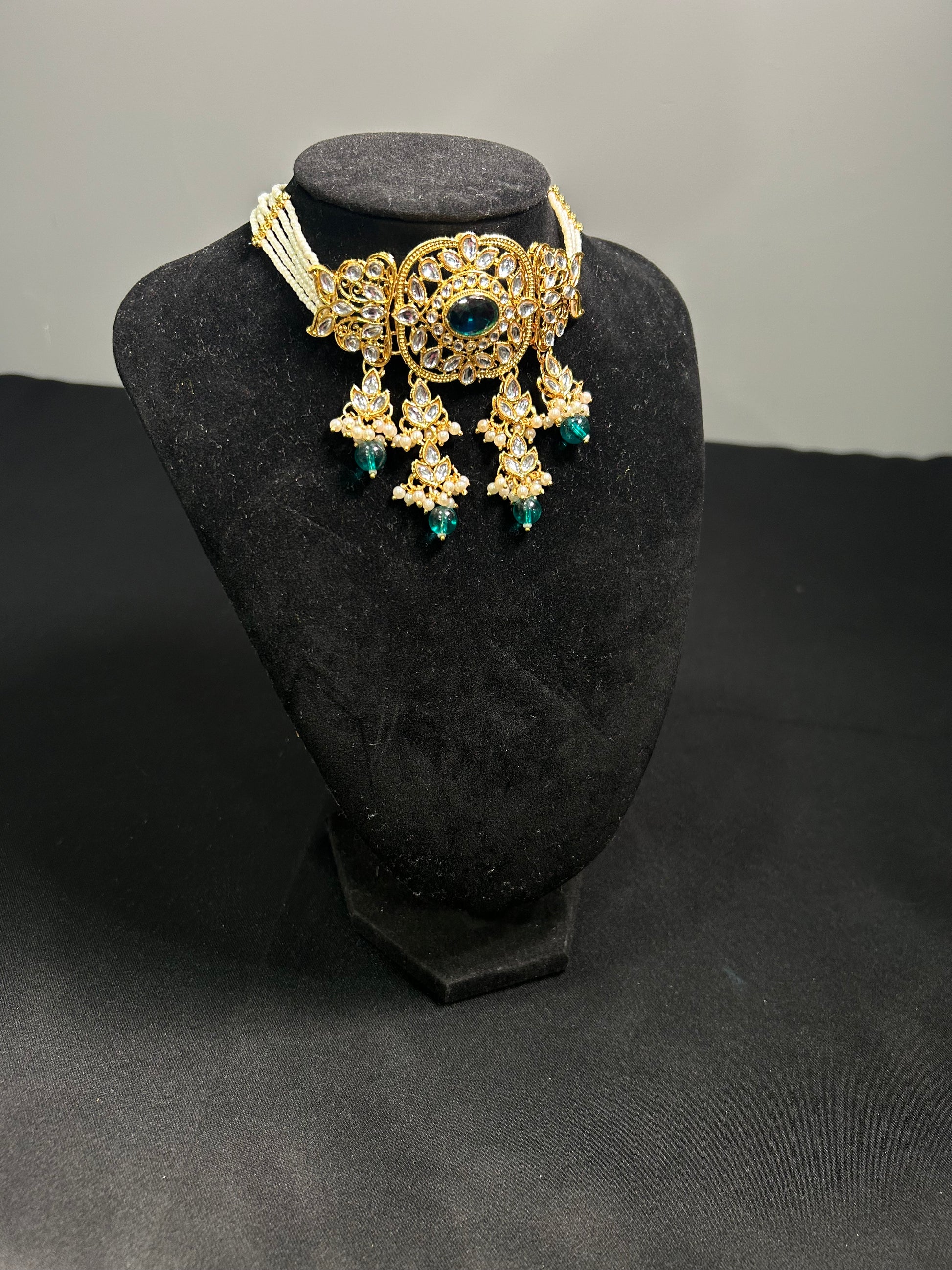 This elegant Necklace set will add a touch of glamour to any outfit. The intricate designs of the necklace and earrings, combined with the beautiful stones, will make you stand out in any crowd. Handcrafted with precision, this set is sure to impress.
